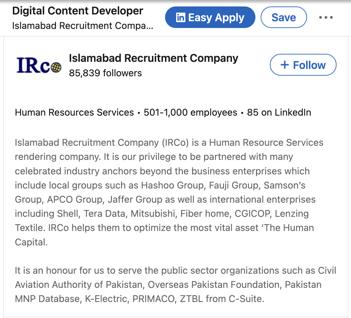 job vacancy in Pakistan